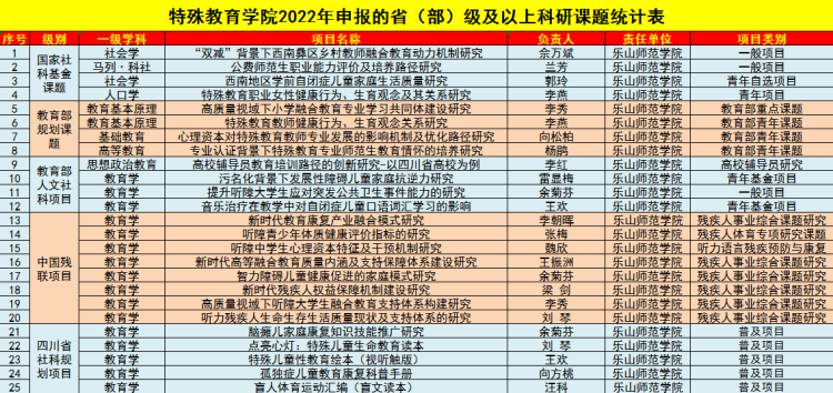 抓科研重行动,提升学科实力。依托学院博士工作站,根据不同级别科研项目课题指南和申报要求,对标申硕举行学院科研方向、选题等论证会,结合实际组建高、中、低级职称合理搭配的教师团队积极申报各级研究项目。据统计,今年以来共申报国家社科、教育部、中残联、省社科规划等省部级及以上项目25项,厅级(含校级)项目14项,横向课题5项;截至目前,除所有省部级及以上项目均未公布立项情况外,现已立项厅级(含校级)项目7项、横向项目4项;已正式发表B类核心期刊论文2篇、一般期刊论文5篇;拟出版学术专著1部。