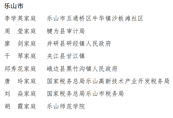 长期以来,学校为贯彻师德师风、家教家风建设,深入开展了以传承和弘扬中华民族传统美德为主要内容的家风文化活动,并以此为切入点和突破口,形成爱国爱家、相亲相爱、向上向善、共建共享的文明新风。在各级家庭文明建设活动以来,我校已荣获全国最美家庭称号3个、四川省最美家庭称号3个、乐山市最美家庭称号5个。