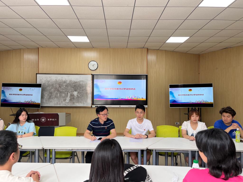 本网讯(文、图/郭元红)5月20日,音乐学院在学院智慧教室组织学生专题学习习近平总书记在庆祝中国共产主义青年团成立100周年大会上的重要讲话精神。音乐学院党委书记罗谊恒,学院团学干部、优秀学生干部、优秀团员、奖学金获得者代表,各班团支书参加了专题学习,会议由分团委书记郭元红主持。