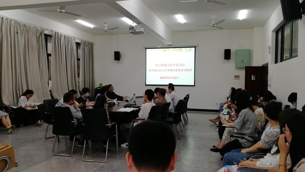 会上,李涛结合学院实际,重点从“大思政”“大问题”“大先生”“大熔炉”四个方面,深入阐释习近平总书记考察人民大学重要讲话精神。李涛指出,在2021年全国“两会”上,习近平总书记提出了“‘大思政课’我们要善用之”的重要论断。这次,总书记在人民大学考察时说道:思政课的本质是讲道理,要注重方式方法,把道理讲深、讲透、讲活,老师要用心教,学生要用心悟,达到沟通心灵、启智润心、激扬斗志。总书记这番讲话,我们老师需要仔细体会并朝着讲好思政课这个方向不断努力。