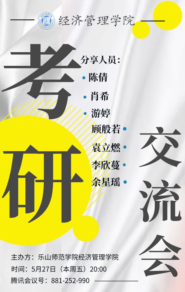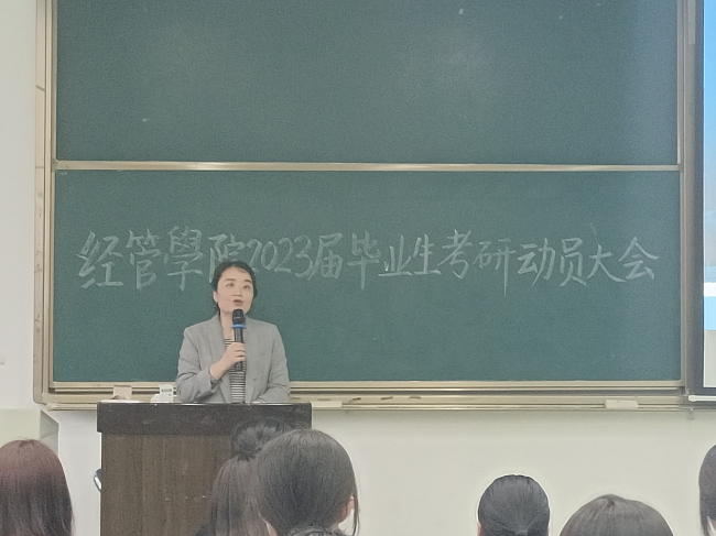 本网讯(文/刘佳怡,图/刘欢)5月27日,经济管理学院于行知楼325教室开展2023届毕业生考研动员大会,经管学院党委副书记丁敏娜、副院长杨小川等参加了大会,2018级考研录取的七位同学以线上形式开展经验分享。
