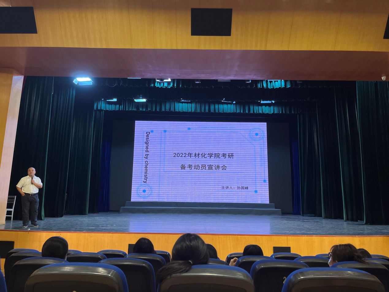 营造氛围,激发内生动力。切实加强思想引领,学院专门召开了2023届考研工作动员会,学院党委书记(主持党务工作)孙国峰围绕“为什么考研”“如何复习专业课”“如何选择报考学校”等问题,鼓励学生努力拼搏,实现自己的人生价值和社会价值。充分发挥榜样典型的带动作用,在学校官微发布《星光不负赶路人——材化学院学霸寝室》;继承和发扬材化学院一级带一级“传帮带”的传统,做好经验分享,考取研究生的18级同学撰写考研心得分享在学院斑斓化学公众号,同时深入班级与师弟师妹们分享自己的考研备战经验。