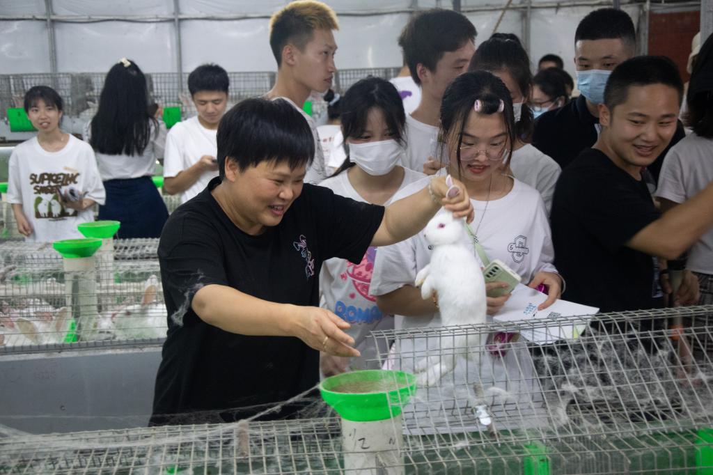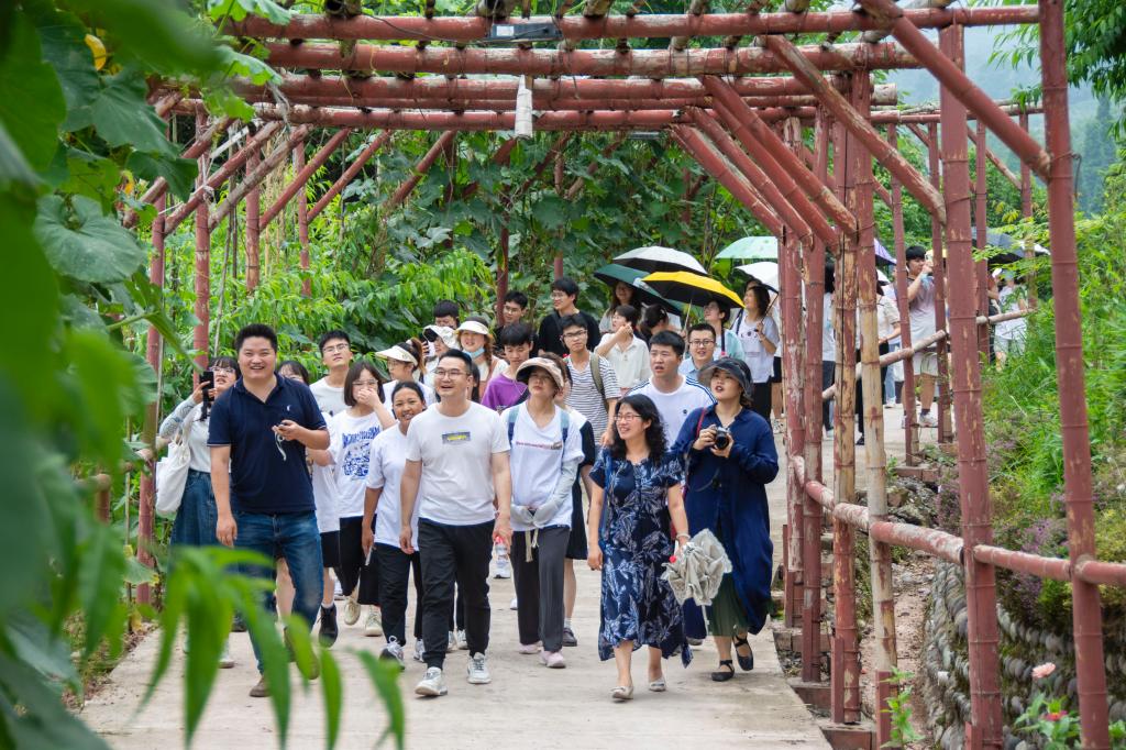 犍为组的同学们先后来到银桥村“三治融合”示范点(舞雩台)、高龙村茶叶种植示范基地(青山寨)、熊马村“兔-柑橘”种养循环现代农业园区(兔公馆),通过听介绍、看实景、提问题等方式,详细了解了犍为县特色产业发展、基层治理等方面的情况,亲身感受了乡村发展的巨大变化。