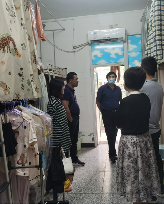 本网讯(文/李林、图/李松柏)为深入了解我校联合培养研究生实际生活情况,进一步提高联合培养研究生管理服务工作,6月10日下午,学科建设与发展规划处处长陈天柱、副处长刘芳、后勤保障服务部副部长何志伦一行6人走访了联合培养研究生宿舍。