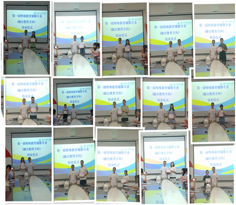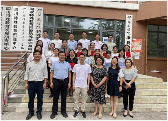 最后,教学部部长龙述君为各位同学颁发了特殊教育辅修专业(融合教育方向)结业证书。典礼结束后,全体师生在学院门前合影留念。