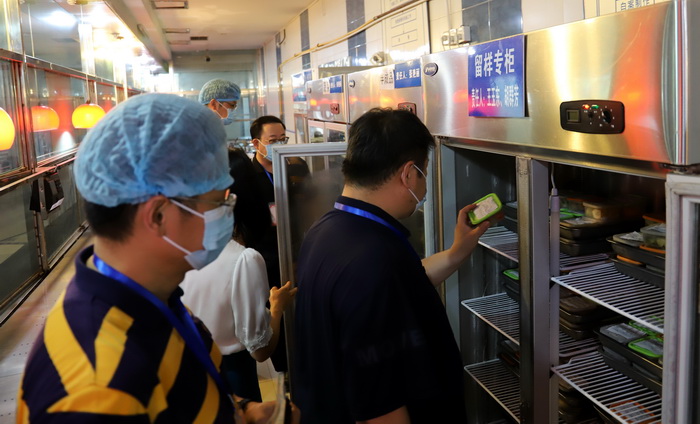 本网讯(文、图/代成刚)根据《四川省教育厅关于开展学校食品安全风险防控年度评议工作的通知》要求,由西南交通大学饮食中心主任马勇锋任组长,电子科技大学后保部清水河饮食服务部主任王登峰、成都理工大学后勤服务集团饮食中心副主饶峰、西南交通大学饮食服务中心副主任高伟组成的专家组,代表四川省高校后勤协会伙食专业委员会,于6月16日下午,对我校食品安全风险防控工作进行了检查评议。后保部领导班子和饮食中心、师科公司相关工作人员热情接待了专家组一行,并随同检查。