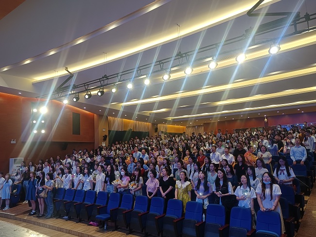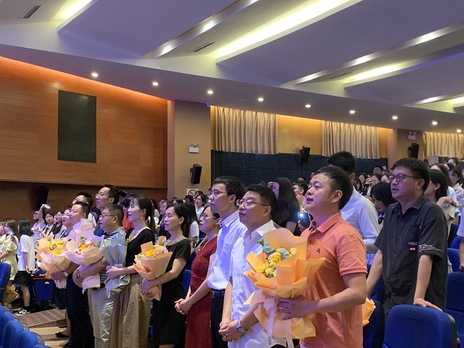 在师生互动环节,同学们与老师积极互动,畅想未来,老师们为毕业生指点方向,规划美好蓝图。毕业班辅导员郑曾俊老师为大家分发梦想的种子,祈望同学们的梦想在未来开花结果。毕业生向老师们献花,表达了对老师的感激与不舍,在师生深情拥抱后,学院给同学们送上了精心准备的毕业礼物。最后,全体师生齐唱《送别》,在主持人对毕业生们的祝福声中,毕业生欢送仪式圆满结束。