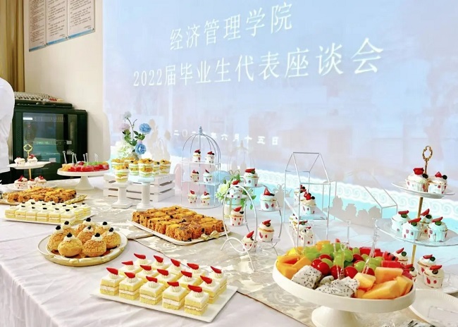 同学们在座谈会上到,学院老师爱岗敬业,关心学生,办事效率高,为大家提供“考研大礼包”、完善学院资料信息库等,支持大家考研考公。同时,他们提出,希望学院加强重视对学生的学术规范教育,实行跨板块教育,进行课程融合等。座谈会上学院领导还为学生现场颁发了毕业纪念品,同时准备了丰盛的甜品台,展现了经管的温情。