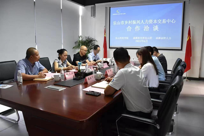 在随后的座谈交流环节,乐山农交所和成都金控人力资源有限公司的相关领导参与座谈交流。学院与成都金控人力资源公司就进一步拓展成都实习就业渠道、加入绿色产业发展联盟等事项,进行了深入的探讨交流,达成了广泛的共识。乐山农交所就与学院共同建立乡村振兴人才培训班从组建方式、人才培养目标定位、人才就业岗位设置等方面进行了深入探讨,并初步确定了协议的相关内容。通过此次交流活动,学院深入了解了当前成都、乐山等地乡村发展态势和人才需求趋势,为今后人才培养定位的完善指明了方向。同时也进一步加强了与成都金控的合作,为进一步促进学生实习就业增添了新的动力。