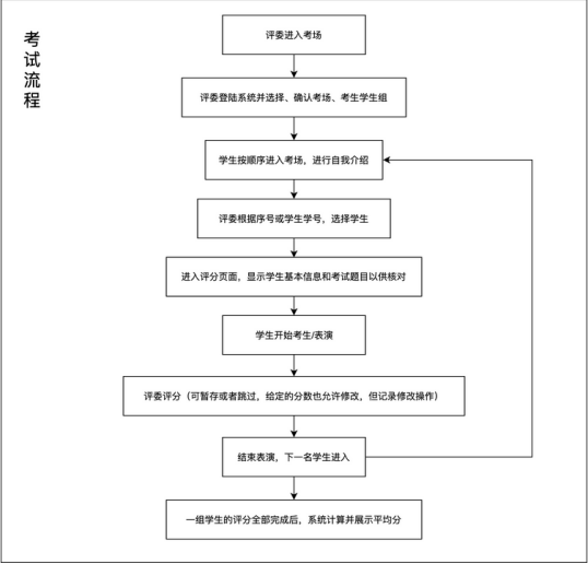 此系统分为两个端口,学生端通过登录微信小程序进行考试顺序抽签。教师端口同样通过登录微信小程序,进行核查所承担的考试场次、时间、地点、考试班级等信息并进行打分。考试结束后,系统自动生成PDF格式以及文档格式两个版本平均考试成绩。数据导出后教务科留存并发送全体教师。