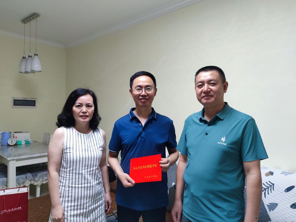 本网讯(文、图/马渝)关心困难党员是我们党内的优良传统,6月29日,七一来临之际,马克思主义学院党委书记李涛、院长郑文杰一行看望马院党员王丛林老师。