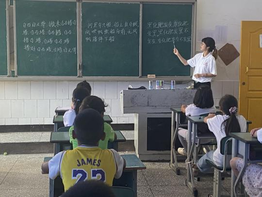 本网讯(图、文/刘玉凤)为深刻诠释中华优秀传统文化内涵,加大民族地区、农村地区国家通用语言文字推广力度,彰显中华语言文化魅力,7月8日,乐芽青年志愿者们在马边彝族自治县水碾坝小学开展“第二课堂”推普日。