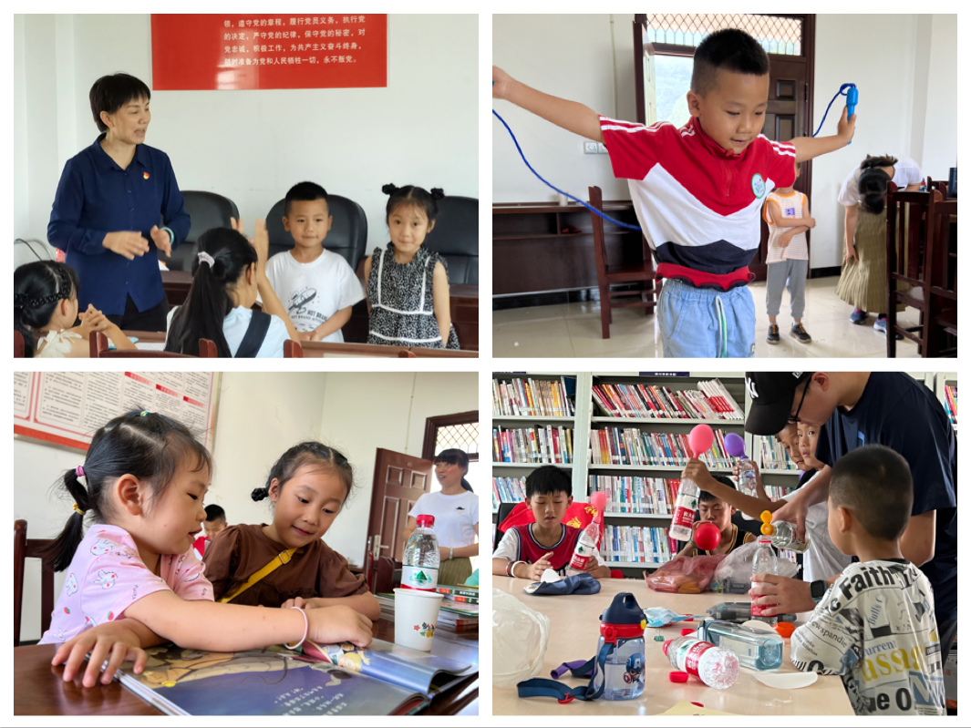 本次党员志愿服务活动团队是由图书馆档案馆直属党支部四个党小组的党员志愿者代表组成,以阅读为手段,通过开展丰富多彩的活动,用陪伴关爱乡村孩子,以文化助力乡村振兴。该团队面向暑期留守在张村村的幼、小、初学生主要开展了绘本阅读、诗词赏析、古诗咏唱、科普实验、安全教育,将历史人文素养与体育活动、音乐舞蹈等有机结合,寓教于乐。