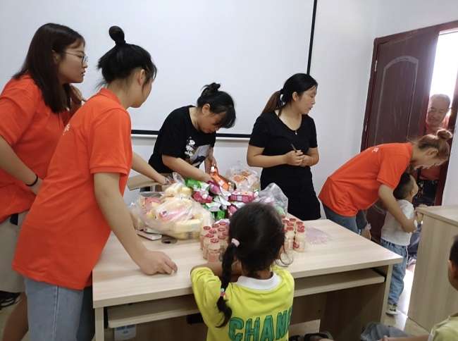 “同心燃梦”服务队志愿者从学校出发,来到马边福来村,与村里的小朋友们愉快会面。团队领队向福来村村支部书记简永芬和小朋友们介绍了本次志愿活动的内容及意义,用一个户外小游戏让小朋友们和团队成员相互熟悉。