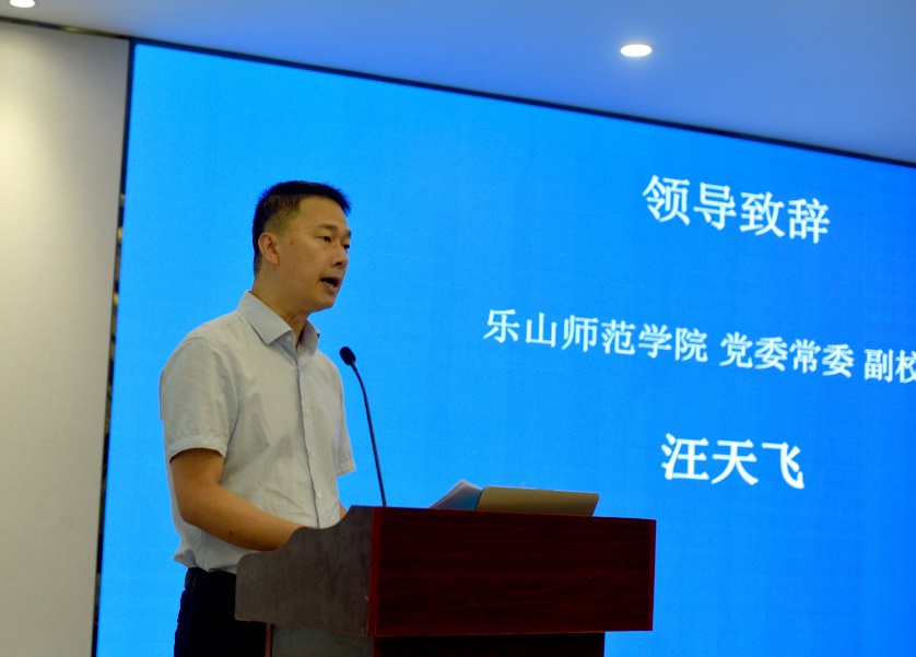 开幕式上,我校党委常委、副校长汪天飞教授代表学校致辞,他首先对前来参加会议的学者们表示热烈的欢迎,向各位专家给予乐山师范学院发展的支持表示感谢,并介绍了学校和学院的发展与现状。他表示,本次会议的召开不仅是我校师生向各位专家学者学习的良机,同时,也是推动我校物理实验教学发展难得的机遇,必将为我校的物理实验教学改革注入新的动能、增添新的活力。