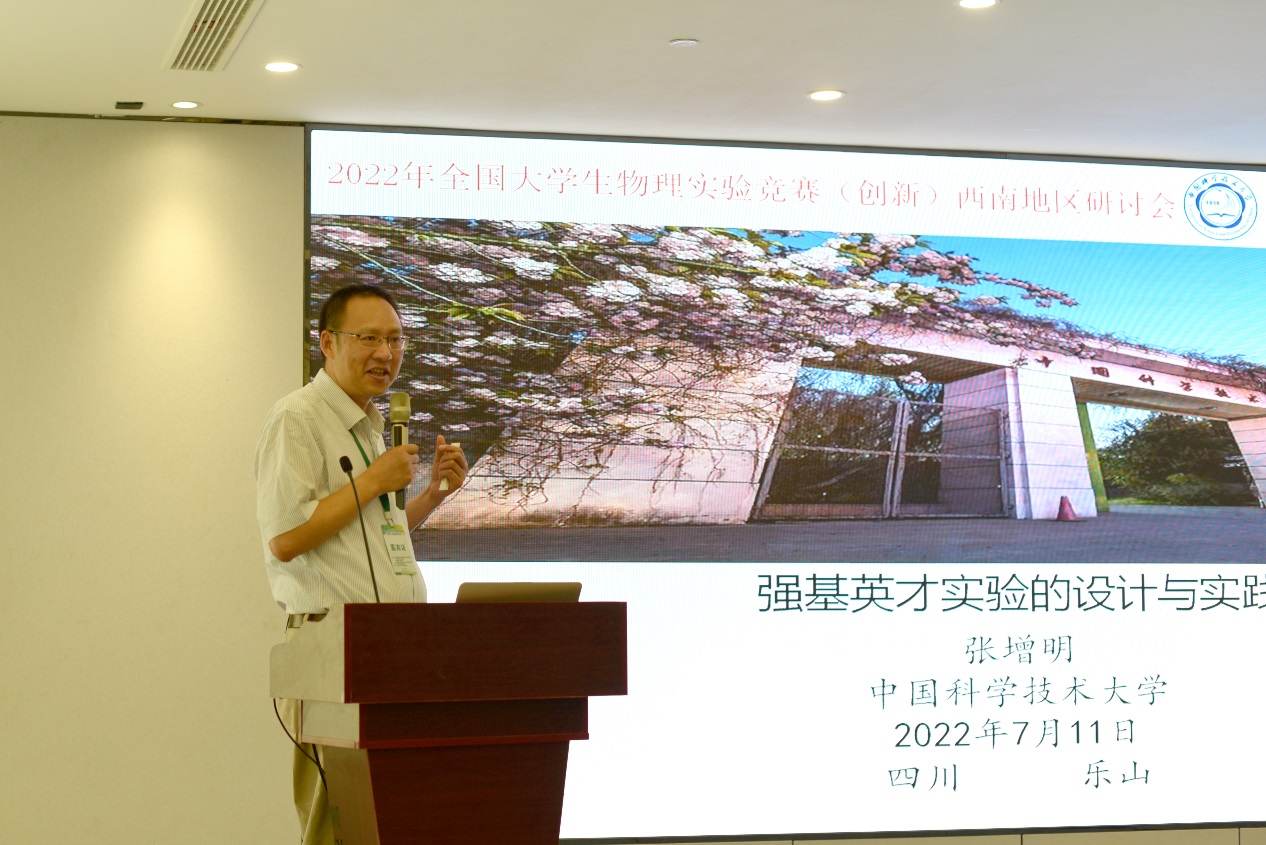 本网讯(文、图/杨建会)由教育部高等学校大学物理课程教学指导委员会大学物理实验室专项委员会、国家级实验教学示范中心联席会物理学科组、西南地区工作委员会联合主办,乐山师范学院数理学院承办的“2022年全国大学生物理实验竞赛(创新)西南地区研讨会”7月10日-13日在四川乐山举行。全国大学生物理实验竞赛是由国家级实验教学示范中心联席会物理学科组、全国高等学校实验物理教学研究会、教育部大学物理课程教学指导委员会大学物理实验专项委员会和中国物理学会物理教学委员会联合举办的一项面向大学生的重要赛事,2020进入全国普通高校大学生竞赛排行榜。