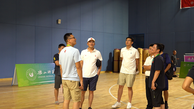 本网讯(文/向瑞雪 图/龚彬)7月12日-14日,体育学院院长张峰、党委书记钟大勇带领体育学院领导班子和各工作组组长,对我校承办的第十四届省运会三人制篮球赛筹备和报到情况进行了检查。