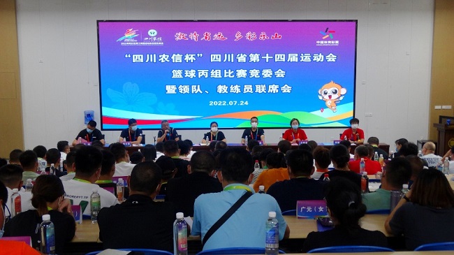 24日下午19:00,竞委会召开篮球(丙组)比赛竞委会暨领队、教练员联席会。会上,乐山市体育局局长向蕾致欢迎辞,她表示第十四届运动会是我省规格最高、规模最大、影响最广的综合性体育盛会,乐山市体育局以饱满的热情和充分准备为各代表队、各位裁判和官员提供优质的服务,期待运动员们能在本届省运会中取得优异的成绩。乐山师范学院体育学院党委书记钟大勇对赛区组织机构、场地布置、器材安装、设备调试、防疫举措、后勤保障等工作已全部完成,乐山师范学院将全力以赴确保比赛能够顺利进行。四川体育职业学院党委委员、项目分管负责人段渝川对疫情防控、绷紧安全之弦、强化管理、赛风赛纪、反兴防兴等方面提出了五点要求。