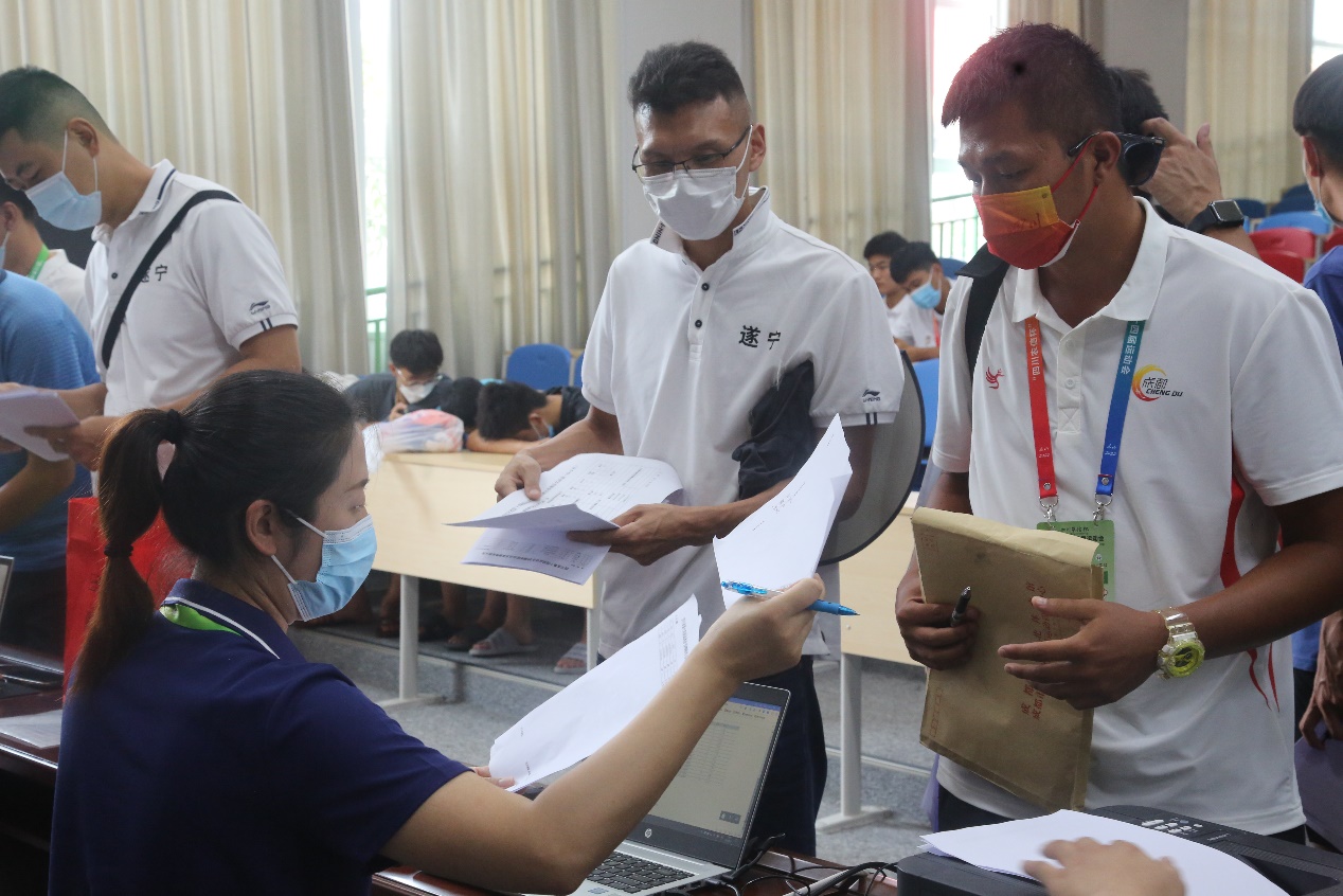 本次比赛共有来自全省12个市州、100余名运动员参赛。在乐山师范学院体育学院志愿者的帮助和服务下,各参赛代表队已经顺利完成运动员登记报到、防疫检查、资格审查、领取参赛牌及相关资料、比赛场地适应训练等相关工作。各代表队对场地设备、器材状况以及体育学院提供的无微不至的后勤保障服务给予充分肯定和高度赞扬。