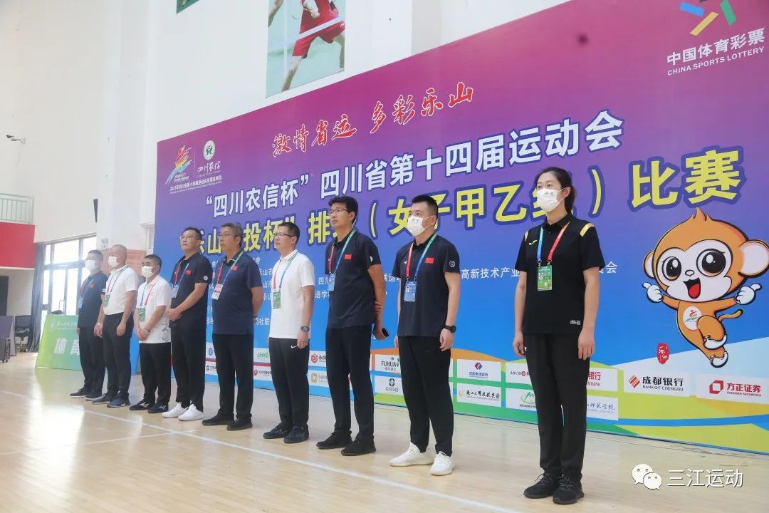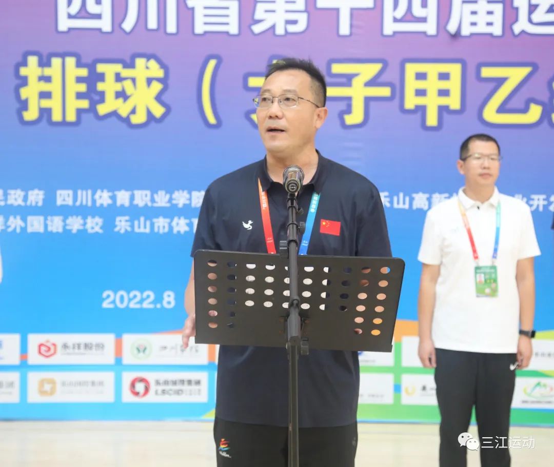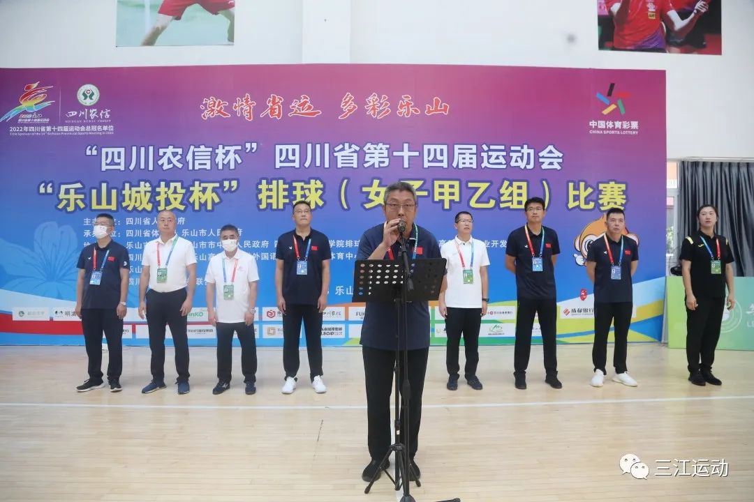 最后段渝川宣布"四川农信杯"四川省第十四届运动会"乐山城投杯"排球(女子甲乙组)比赛正式开赛。
