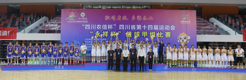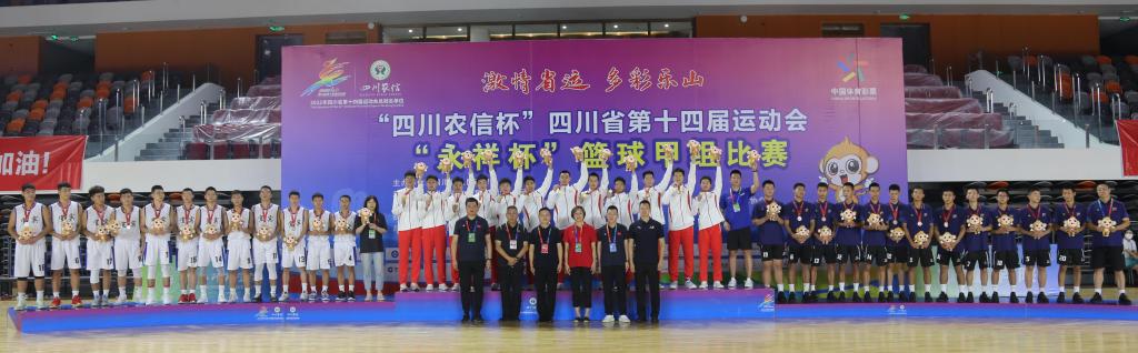 本网讯(文 夏川/图 刘李、刘凡嘉、向瑞雪)8月12日,随着比赛结束的哨音吹响,“四川农信杯”四川省第十四届运动会"永祥杯"篮球甲组比赛在乐山市奥体中心圆满落幕,并举行了颁奖仪式。