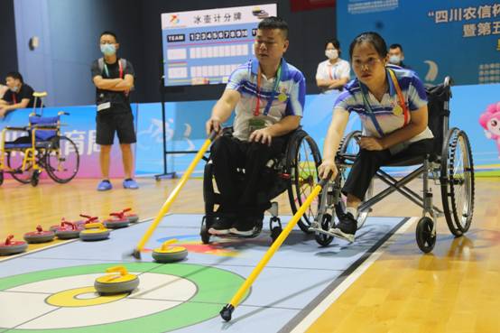 由我校体育学院承办的残运会旱地冰壶比赛为男女混合项目,共分为听力残疾组、轮椅公开组、智力残疾组三个组别,其中智力残疾组和听力残疾组每局比赛14分钟,轮椅组每局比赛16分钟。