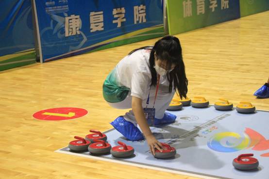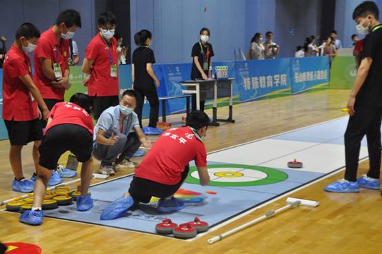 为确保本次比赛顺利开展,体育学院作为具体承办单位供设办公室、后勤组、宣传报道组等七个工作机构,负责后勤保障、组织竞赛、宣传报道等工作。在首个比赛日中,旱地冰壶项目各工作机构都有条不紊地开展进行,顺利完成了竞赛的组织工作。由我校体育学院、特殊教育学学生组成的志愿者团队认真负责、坚守岗位,为运动员提供贴心服务,得到了各参赛代表队的一致好评。