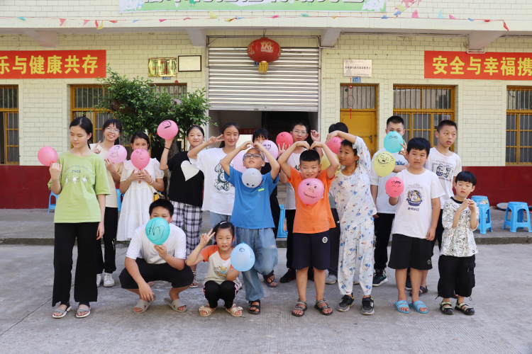 团队成员扮演留守儿童渴望早日归来的“候鸟”,给孩子们传递温暖与关爱。利用所学专业知识开展 “气球游乐园”教育性戏剧治疗课程和房树人测验,协助儿童通过肢体动作、团队协作等方式表达情绪和释放压力,促进孩子们进一步认识自己、认识世界,提升综合素质。