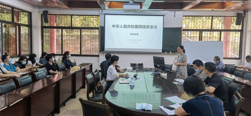 郭剑英从注意个人信息保护、防范网络诈骗、不得发表网络不当言论等方面出发,要求学院教师认真学习《网络安全法》,提高网络信息安全意识和保密意识,守住网络安全底线。