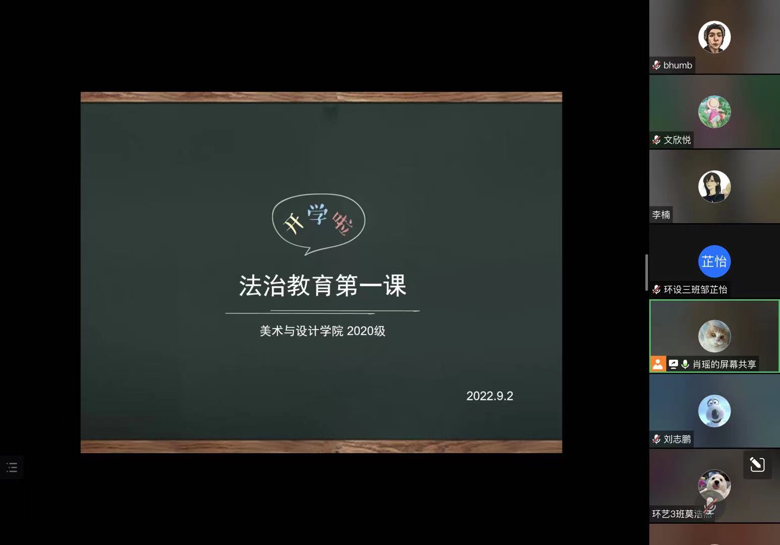 本网讯(文、图/刘桐江)为提高同学们的法治意识,营造平安、和谐、文明的校园环境,美术与设计学院积极开展“法制教育第一课”,由各年级辅导员主讲,学生通过腾讯会议在线听课。