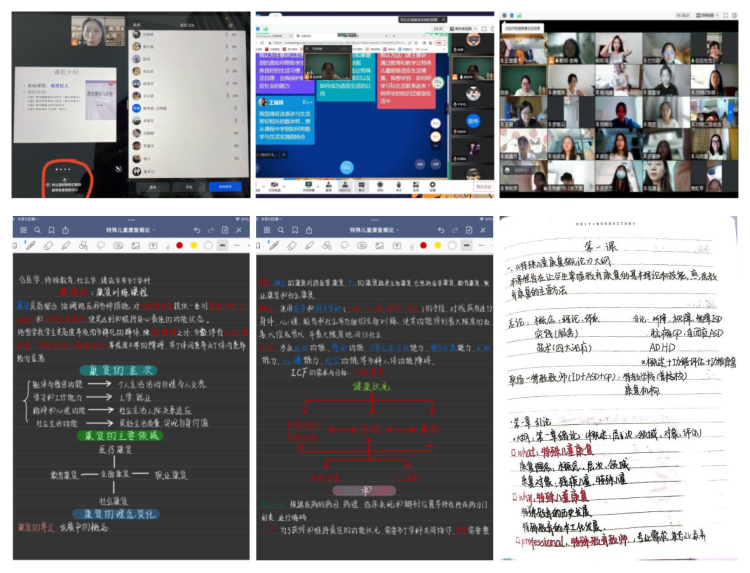 本网讯(文/王振洲 图/ 张梅、袁梅玲、张敏等) 9月5日,特殊教育学院、康复学院师生迎来了新学期开学线上教学第一课。为确保线上教学顺利举行,学院于9月2日就召开了全院教职工大会,传达学校疫情期间开展线上教学的要求,贯彻“理直气壮讲好第一课”精神,督促老师们提前完成在线课程建设、教学设备和资料准备等工作,并制定教学预案等,夯实了“延迟返校不停学、在线教学不断线”的基础保障。
