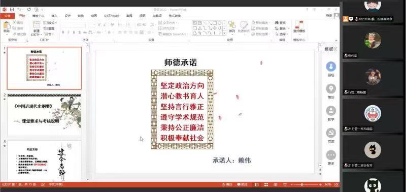 9月5日,学院领导、教研室主任、教学办公室等在线上对任课教师开展师德师风承诺及“开学第一课”的情况进行了检查。