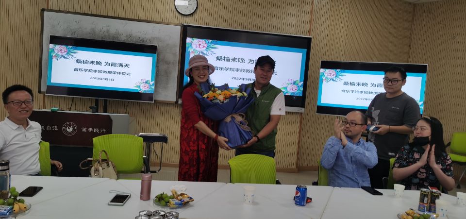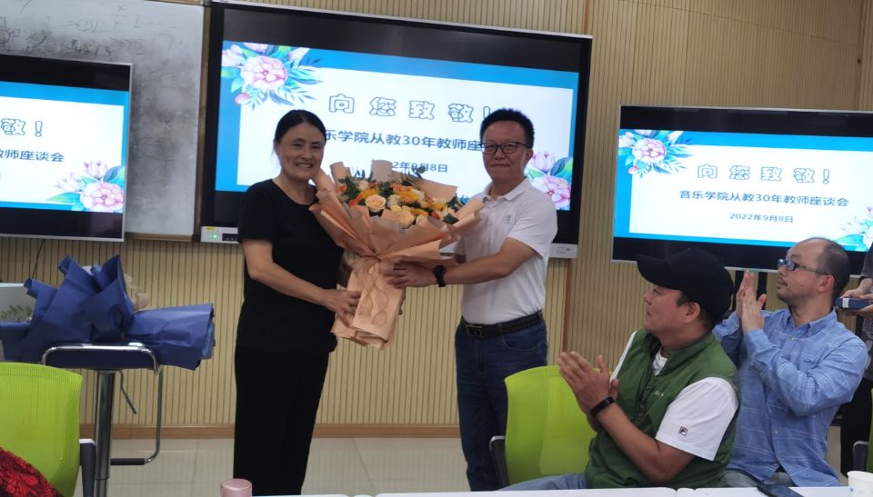 本网讯(文、图/毛敏)9月9日下午,在全国第38个教师节、中秋节到来之际,音乐学院在智慧教室举行荣休仪式暨从教30年教师座谈会。学院荣休教师、从教30年教师、学院领导和教师代表参加了活动,座谈交流会由音乐学院分工会主席毛敏主持。
