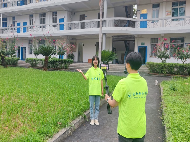 “云游校园”以南北校区为主线,延伸至高新区省级重点实验室。从南校门出发,途径弘毅楼、旷怡楼考研自习室、生科学院办公楼、行知楼、图书馆等生活学习场所。其中详细介绍了历史底蕴浓厚的武大纪念碑、具有生科特色的自然科学展览馆以及学习氛围浓厚的沫若图书馆。最后,由肖析蒙老师介绍了位于高新区的竹类病虫防控与资源开发四川省重点实验室,展示了相关的科研成果。