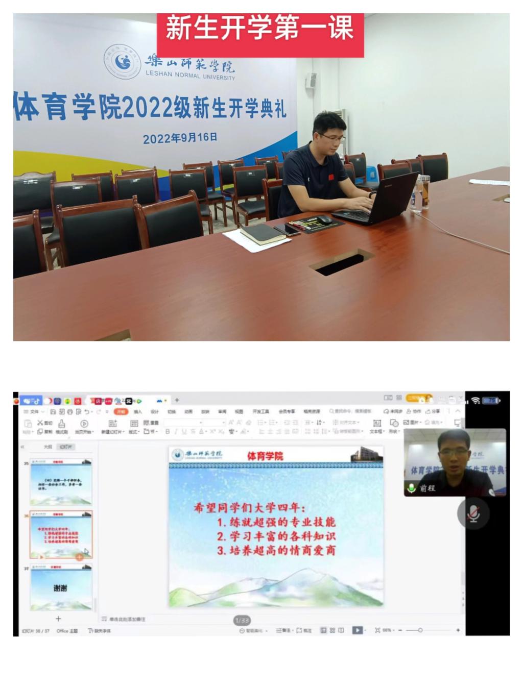 本网讯(文/熊鑫、图/罗治钧)9月16日15时,体育学院在会议室举行了2022级线上新生开学典礼。体育学院院长张峰、体育学院党委书记钟大勇、体育学院副院长黄河、张爱平、社会体育指导与管理专业负责人王志刚、体育教育专业负责人鲁长春、休闲体育专业负责人薛同照、学院各科室科长、全体辅导员老师、新生班主任、部分教师代表、网络端全体新生参加了此次典礼。典礼由体育学院党委副书记陈勋玮主持。