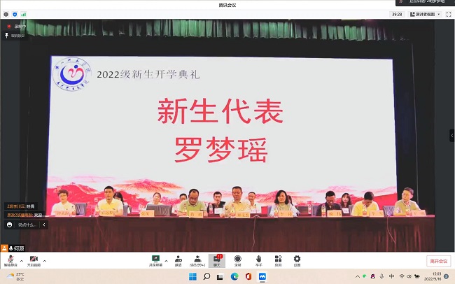 本网讯(文、图/何源)金秋九月,丹桂飘香。因受疫情影响,9月16日,马克思主义学院在实训楼多功能厅与2022级小萌新们相约“云端”,举办了一场“特殊”的开学典礼。学院全体党政领导班子、教授、博士教师代表、行政教辅人员、辅导员、班主任以及2022级全体新生参加典礼。典礼由学院党委副书记钟永淑主持。
