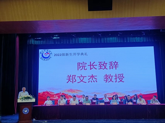 随着庄严肃穆的国歌响起,师生共同起立,开学典礼正式开始。院长郑文杰对来自宁夏、西藏以及四川的新同学们表示热烈的欢迎,并且向同学们介绍了学院的发展历史、师资力量、办学成果、优秀校友等情况,同时他希望2022级新同学能够尽快适应大学生活,学有所成,也希望疫情早日结束,能够在乐师校园见到大家的身影。