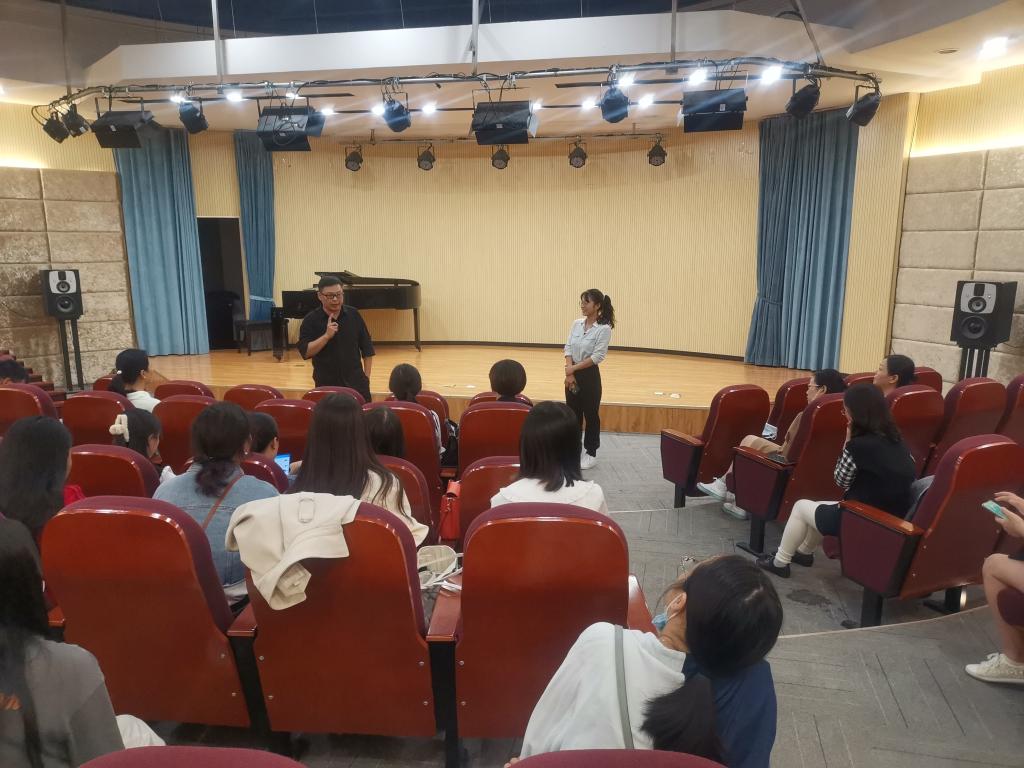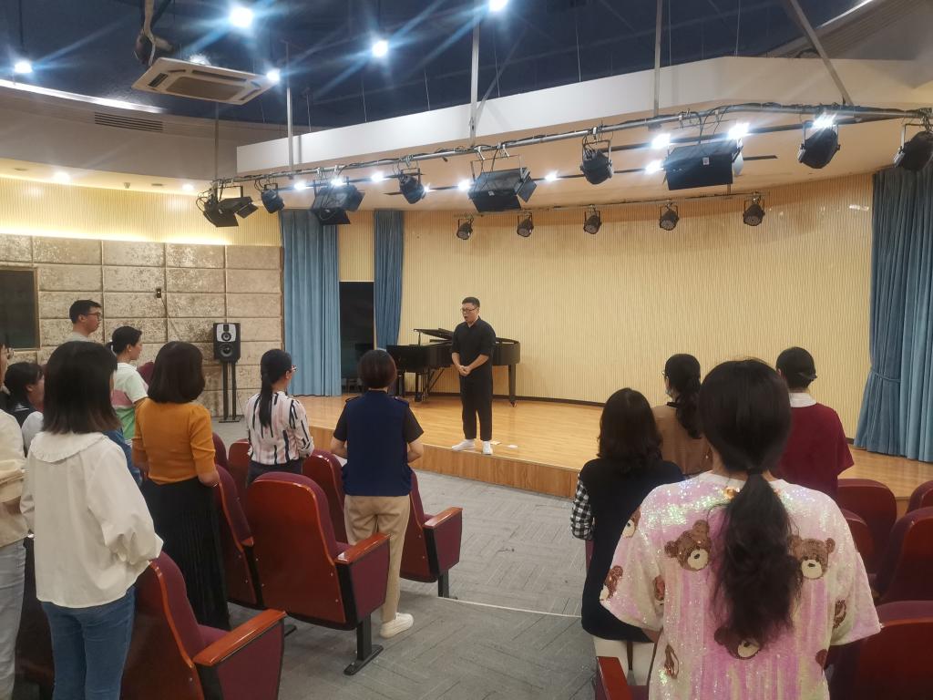 本网讯(文/黄宽娜 图/刘兴龙)为帮助我校教师掌握科学的发声方法,更好地保护一线教师的嗓音,预防职业病,在学校各级领导的关怀下,校工会主办的首场“如何掌握科学发声与嗓音保护”的专题培训于9月22日下午4点在音乐学院邦泰音乐厅顺利进行。