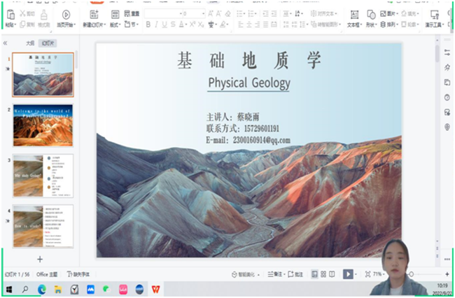 本网讯(文、图/薛文娟)9月22日上午,旅游与地理科学学院蔡晓雨老师开展《基础地质学》课程在线教学。此次教学活动采用“腾讯会议”在线直播课+QQ群线下巩固的方式进行。