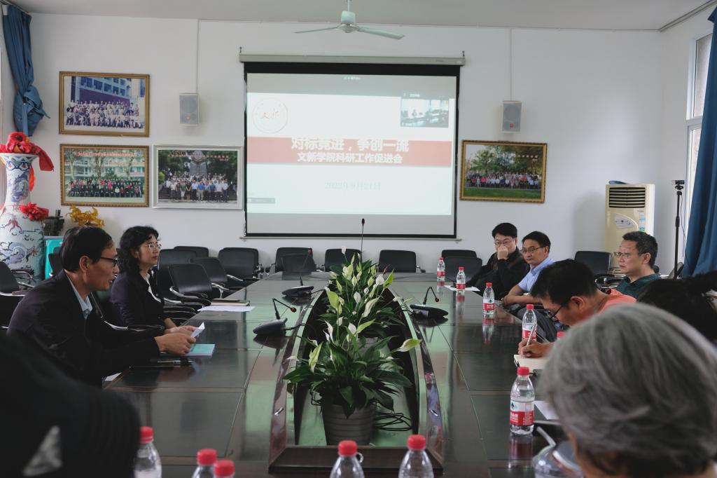 本网讯(文、图/吴雨洁)9月22日下午,文新学院召开科研工作推进会,本次会议采用线上线下结合形式召开。文新学院院长任志萍、副院长刘传启、副院长杨晓军、院长助理张德军、文新学院全体博士教师及科研骨干代表参加会议,会议由副院长刘传启主持。