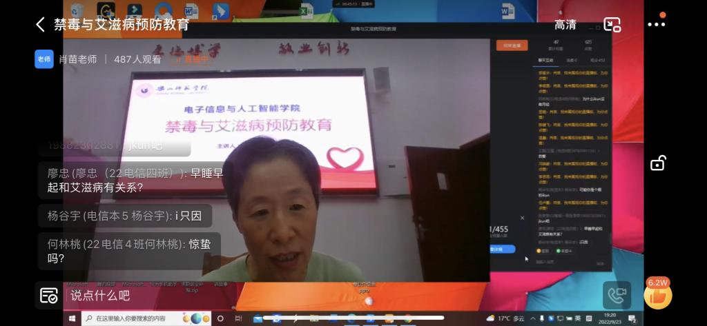 本网讯(文、图/肖苗)2022年9月23日晚上18点,电子信息与人工智能学院2022级新生禁毒防艾主题教育活动在特教C栋501会议室举行。学院辅导员肖苗和2022级全体新生参加,市中区疾病预防控制中心防艾专家陈均特邀出席。会议由肖苗主持。