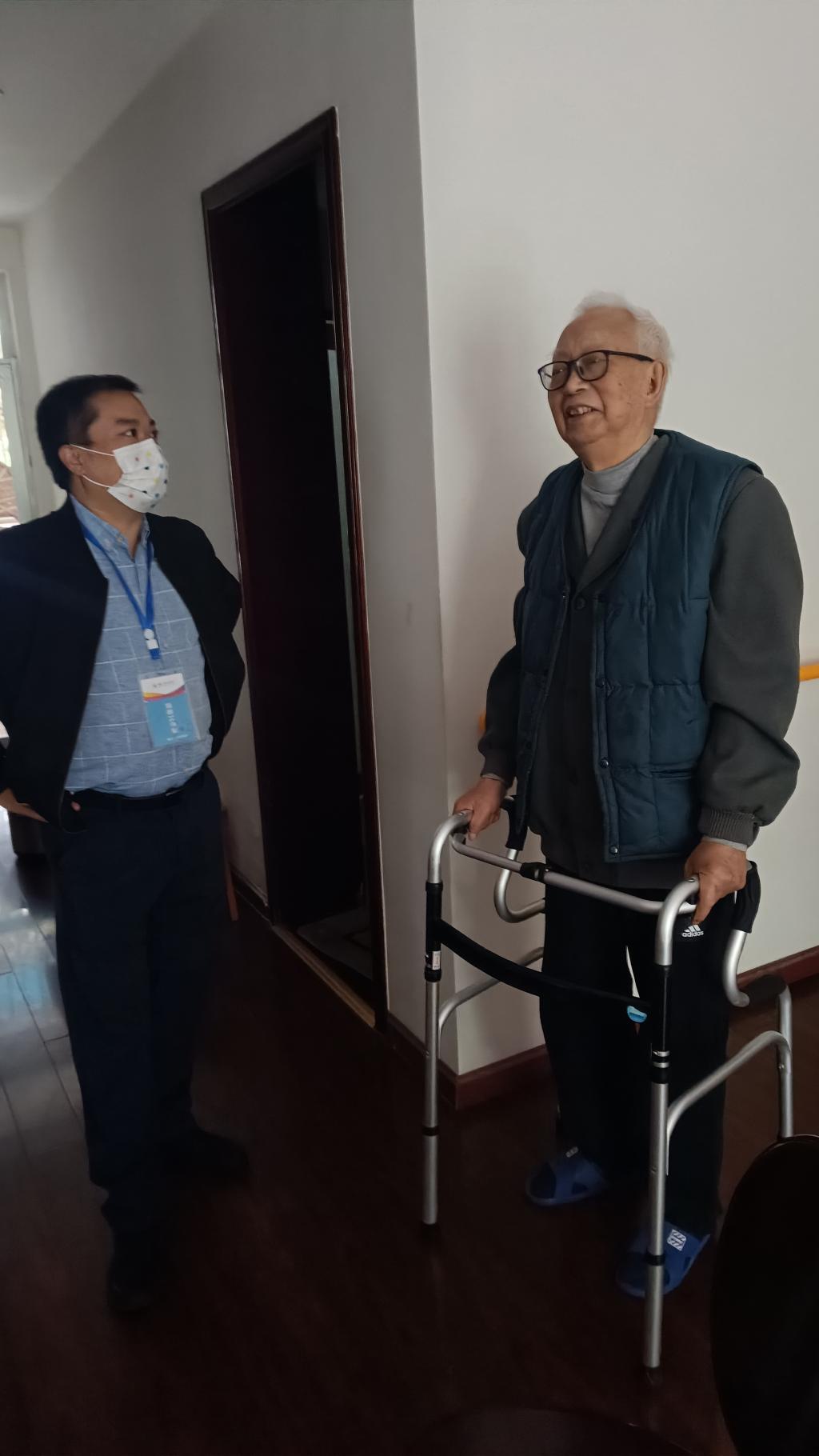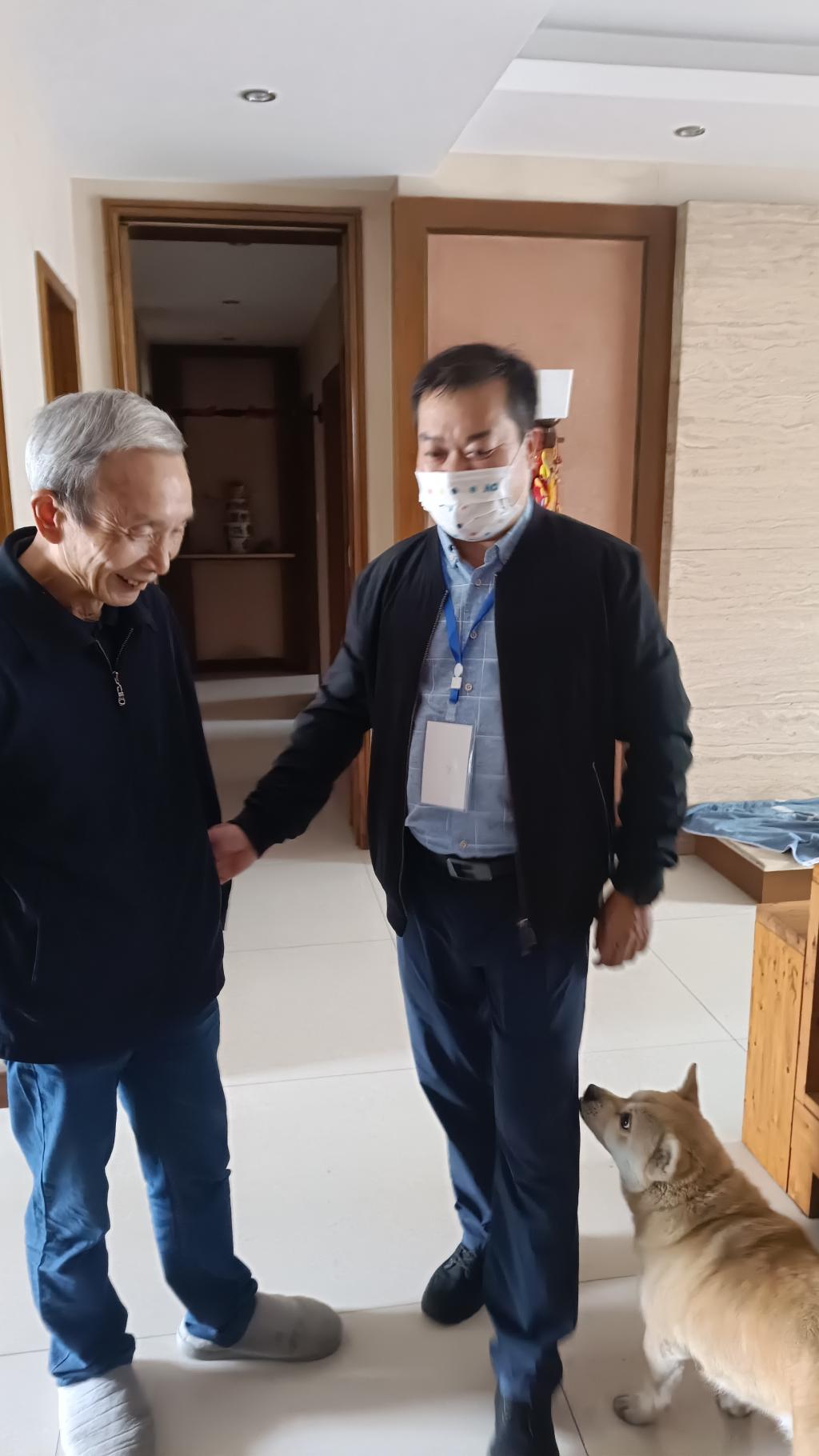 关工委秘书李东、离退休处副处长王德明率队前往女神苑看望了杨胜宽、董群林、罗成德等一众老同志。李东和王德明同各位老同志唠嗑、拉家常,关心他们的身体状况和生活日常,并为他们送上慰问品。董群林、罗成德两位老同志已年逾九旬,依旧精神爽朗,心态乐观。