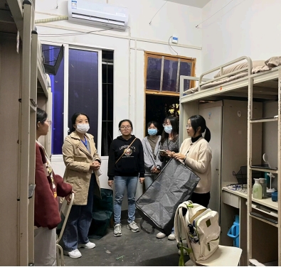 本网讯(文、图/敬雨霏)10月11日晚,经管学院院长邓健、党委书记郭晓黎、副书记丁敏娜、副院长罗富民等领导老师分赴学校各片区学生寝室走访看望学院新同学。