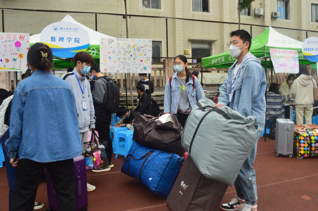 本网讯(文/马梓涵、图/杜巍、代凡)秋风送爽,丹桂飘香,10月8-11日,数理学院迎来了首批可以返校的313名2022级学子。新同学们怀揣着满满的期待来到这里,他们的到来为数理学院注入了新鲜血液。