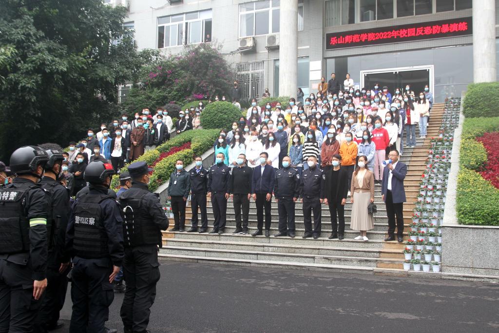 本网讯(文/杜鸿 图/徐凌云、薛小丽)为保障学校师生生命财产安全,进一步增强我校处置暴力恐怖事件快速反应能力,促进校园平安建设,10月14日上午,学校联合乐山公安部门开展了2022年校园反恐防暴突发事件应急演练,以此检验学校在应对此类突发事件时的处置应对能力,让学校安保人员对恐怖暴力事件发生时的应急措施、防卫防范有了切身体验。