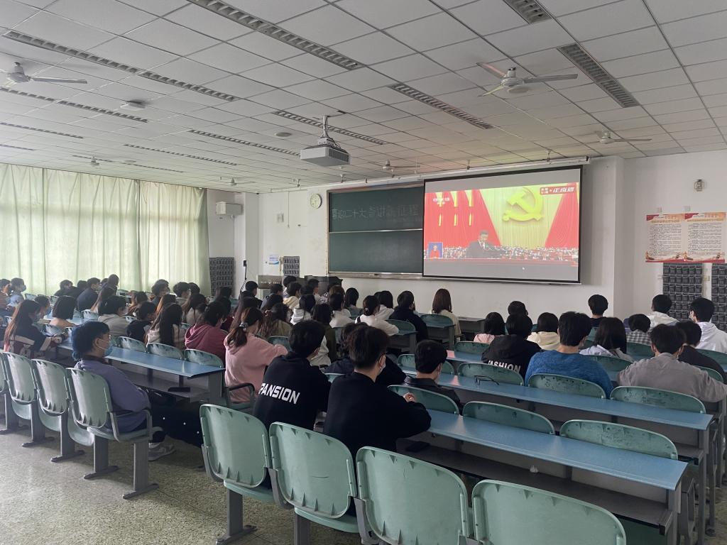 中国共产党第二十次全国代表大会是在全党全国各族人民迈上全面建设社会主义现代化国家新征程、向第二个百年奋斗目标进军的关键时刻召开的一次十分重要的大会。在场收看直播的师生聚精会神,认真学习领会大会精神。开幕会直播结束后,师生们欢欣鼓舞,倍感振奋,反响热烈。