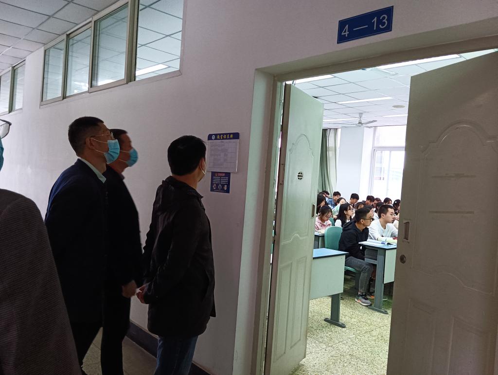 本网讯(文/图 陈雁秋)10月17日上午,外国语学院党委书记熊文、主持工作副院长江世勇、副书记吴小彦、副院长徐波、陈开富带领教学巡查小组成员深入课堂,对教师到岗情况、学生出勤率、课堂秩序、教学准备情况以及教学基础设施运行情况等进行了巡查。