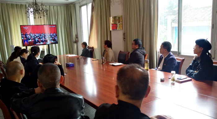 本网讯(文、图/代成刚)中国共产党第二十次全国代表大会于10月16日上午10时在北京人民大会堂开幕。习近平代表第十九届中央委员会向党的二十大作报告。乐山师院后勤保障服务部党总支组织全体党员,集中在三楼会议室收看了开幕会。