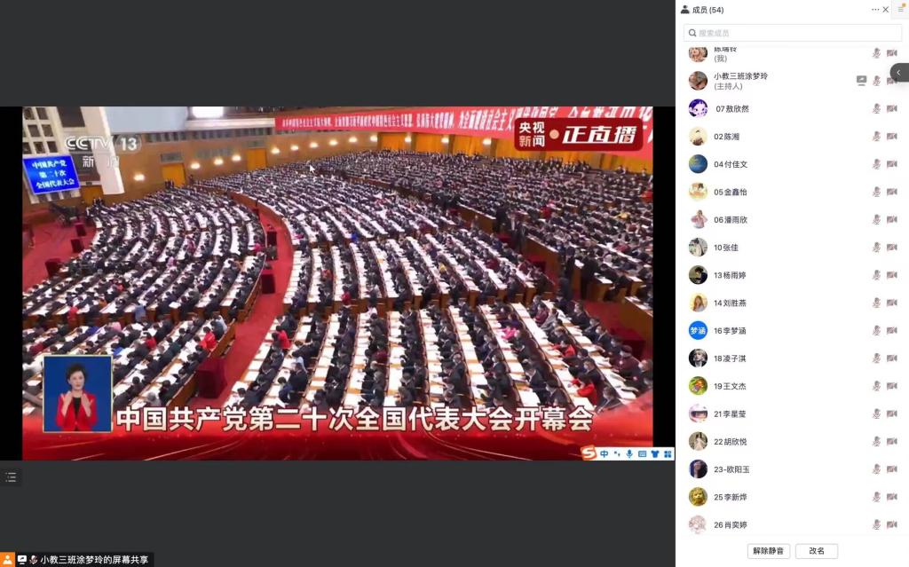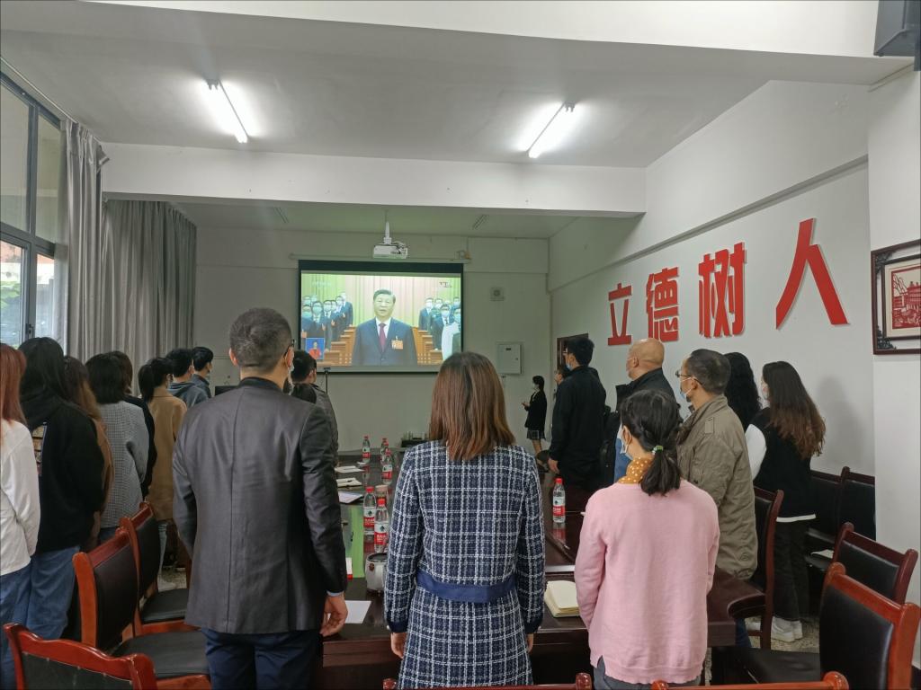 本网讯(文、图/万星、刘玉凤)中国共产党第二十次全国代表大会开幕会于2022年10月16日在人民大会堂隆重召开。教育科学学院党委组织全体师生采取线上与线下相结合的方式收看开幕会,学院教师党员、学生党员代表在学院会议室共同观看,各年级各班团支部、学生机构采用线上集体观看的方式认真聆听习近平总书记代表十九届中央委员会所作的报告。