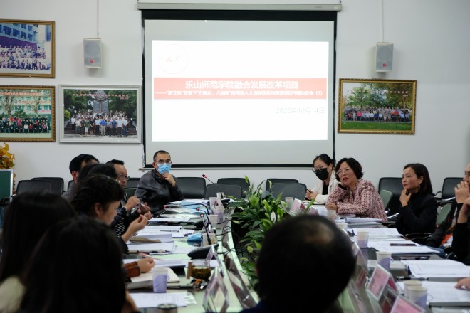 (文/刘传启 图/范龙雨)2022年10月10日下午四点半,文新学院在会议室召开了融合发展改革项目第一次开题论证会。乐山市草堂高中、实验中学、夹江中学的领导和优秀语文教师代表、实习见习及试讲试教外聘教师等受邀参加了此次论证会。参加此次会议的还有文新学院全体领导班子、汉语言文学专业负责人、实践教学科长、学科教学法教师及各年级辅导员。会议由文新学院副院长、项目负责人刘传启主持。